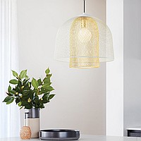 Подвесной светильник из металлической сетки VANTA01 в бело-золотом исполнении создаст в интерьере атмосферу легкости и современного стиля, наполняя пространство мягким диффузным светом. Его дизайн в стиле лофт и скандинавский минимализм отлично подойдет для уютной гостиной или кухни, где он подчеркнет стильные детали и добавит тепла. Размер диаметром 40 см и высотой 35 см делает модель универсальной для надобных помещений с высокими потолками, а один цоколь Е27 позволяет легко заменить источник света. В сочетании с теплыми оттенками и естественными материалами интерьер приобретает свежесть и индивидуальность. Обнови свой интерьер с помощью этой компактной и выразительной модели, которая легко впишется в концепцию современного дизайна. Купи VANTA-GOLD — создай уютный и стильный акцент в доме, подчеркнув его эстетику и функциональность.