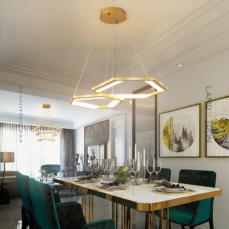 Серия кольцевых светодиодных люстр с плафонами в виде многоугольников с LED-подсветкой по внутренней стороне корпуса