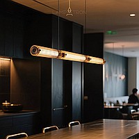 Серия реечных светильников в виде светодиодных стержней внутри удлиненного плафона из рифленого стекла