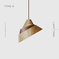 Серия подвесных светильников с пирамидальным корпусом из белого дуба и черного ореха