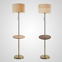 Серия настенных светильников с текстильным цилиндрическим абажуром на прямоугольном основании с предметной полочкой