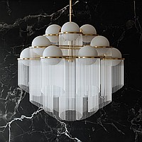 Серия светодиодных люстр с с шарообразными плафонами и декором из стеклянных стержней
