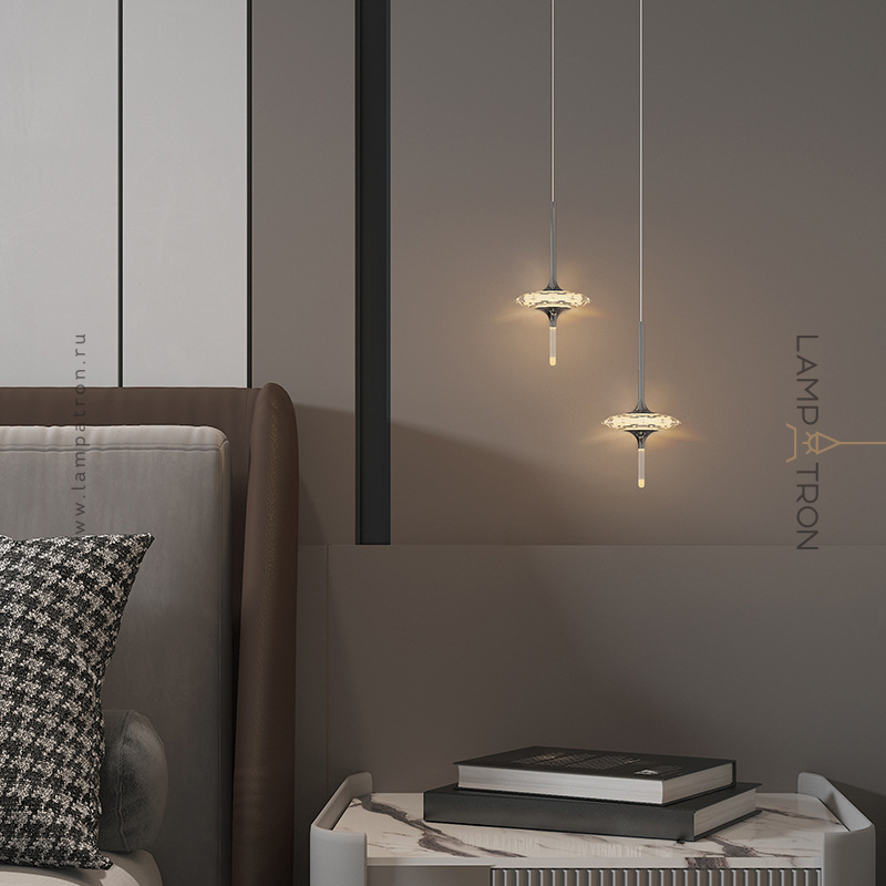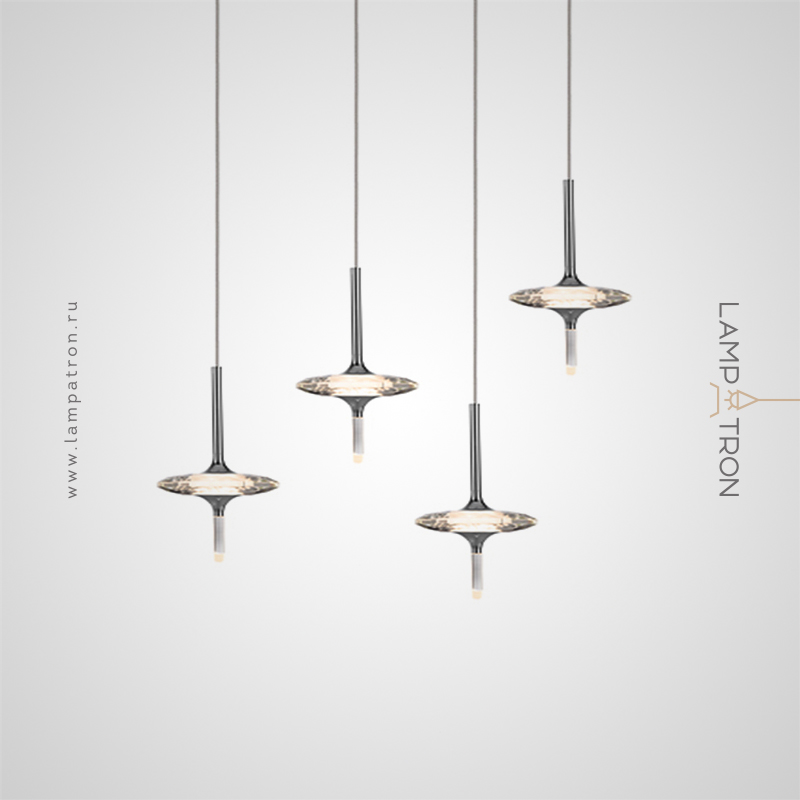 Подвесной светодиодный светильник с плафоном веретенообразной формы с дисковидным хрустальным рассеивателем