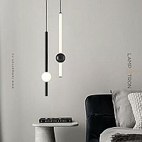 Серия светодиодных подвесных светильников в виде вертикальных стержней с шарами