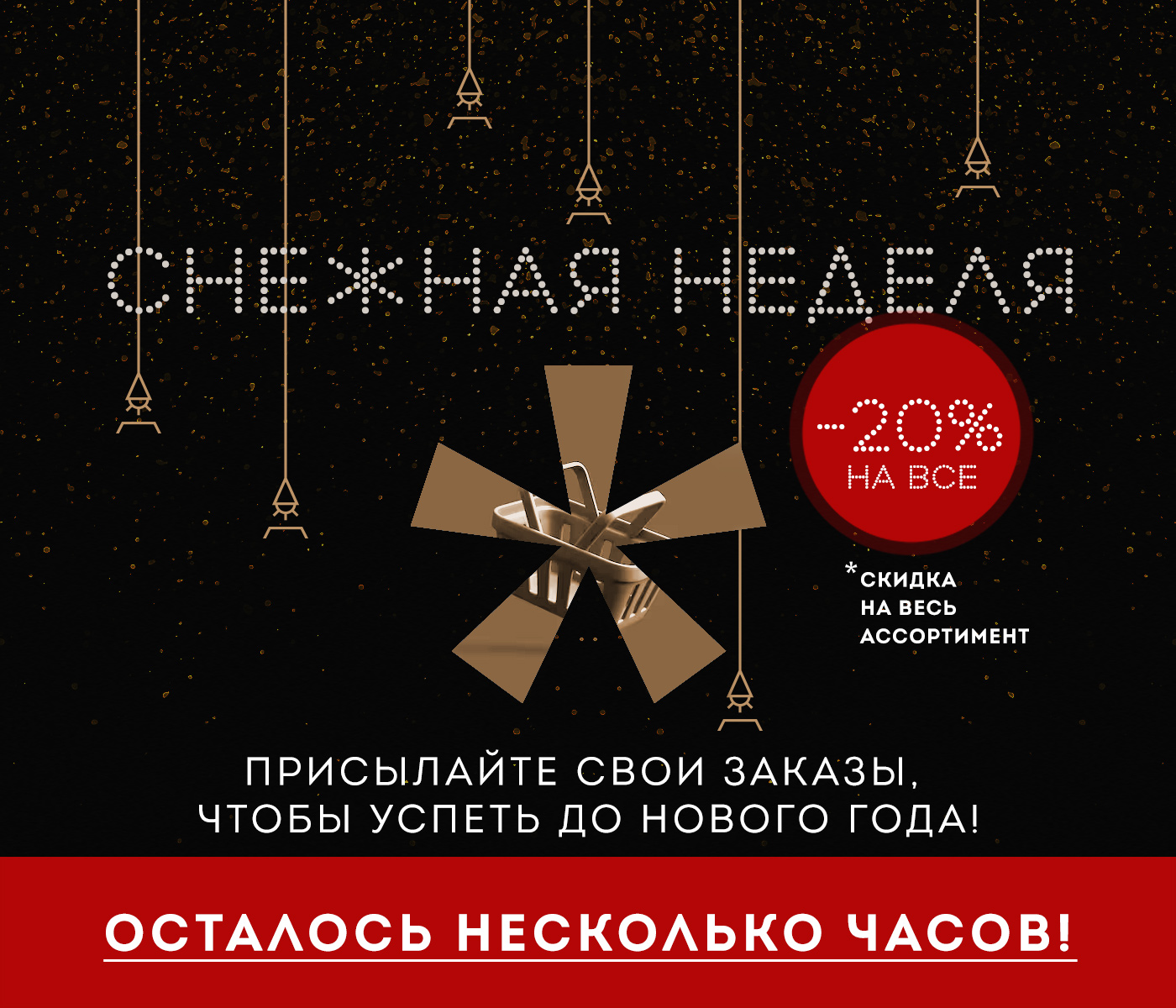 Всю эту неделю с 22 по 31 декабря — у вас есть возможность успеть купить абсолютно любую модель из нашего каталога с праздничной скидкой -20%.